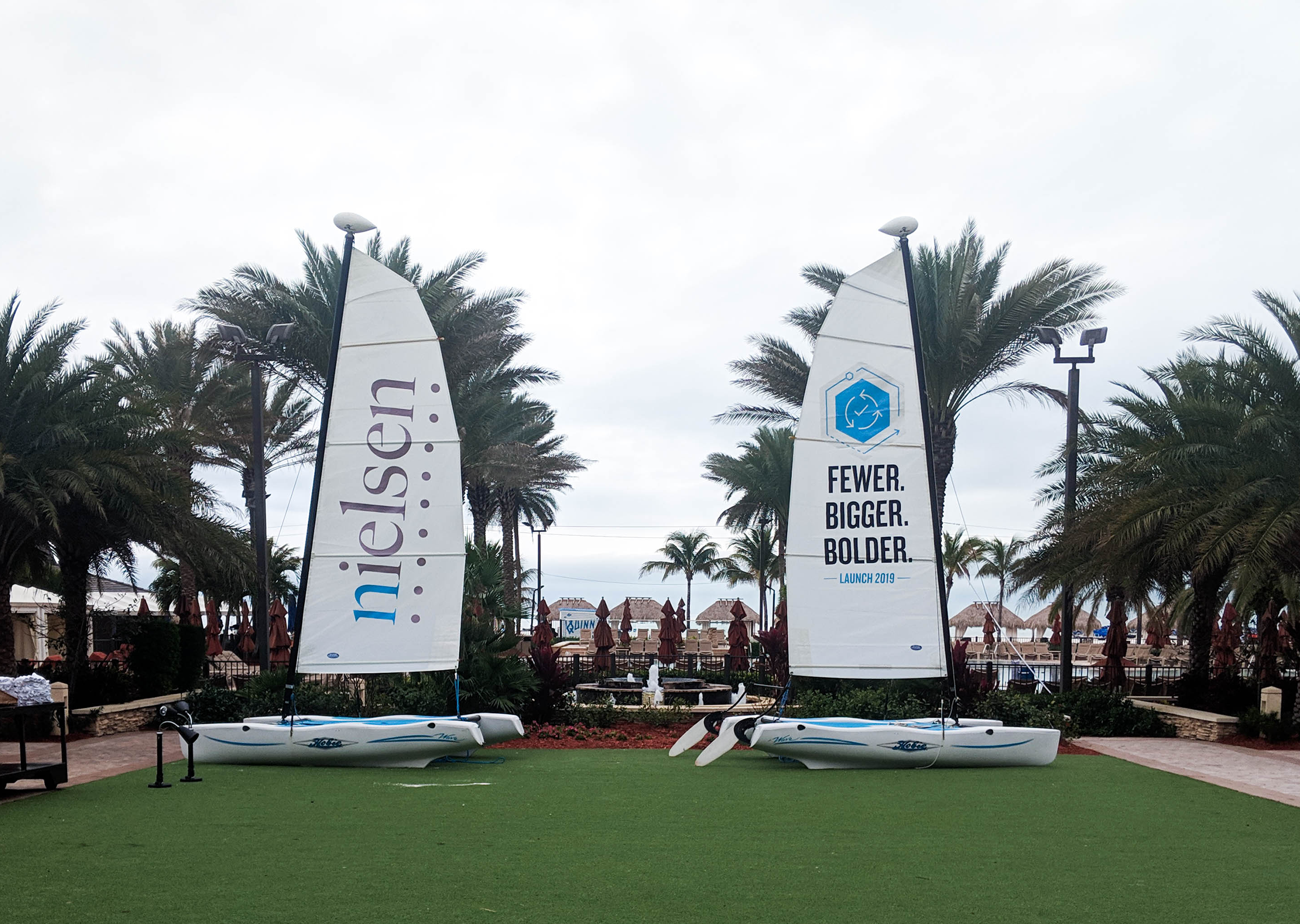 Launch is Nielsen’s annual internal executive meeting. With over 150 executives from all around the world, this year’s event focused on leading with change in the new year. Under the newly appointed CEO’s direction, the theme tagline was “FEWER. BIGGER. BOLDER.” As Creative Director for the event, I was tasked with overseeing the entire process of the event design, from creating the visual identity to overseeing the creation of over 50 applications, including printed installments, digital assets, and main stage presentations.